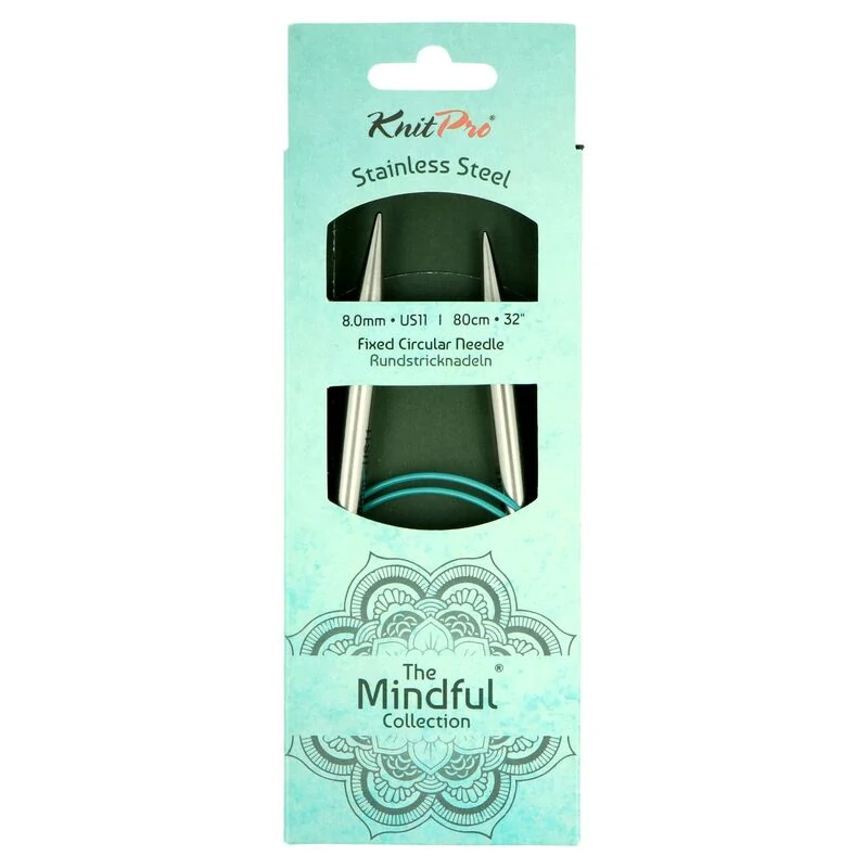 Nová kolekce kruhových jehlic z řady Mindful. Kruhové jehlice mají celkovou délku 80 cm. Velikost jehlic 8mm Délka kovových špiček je 13cm.