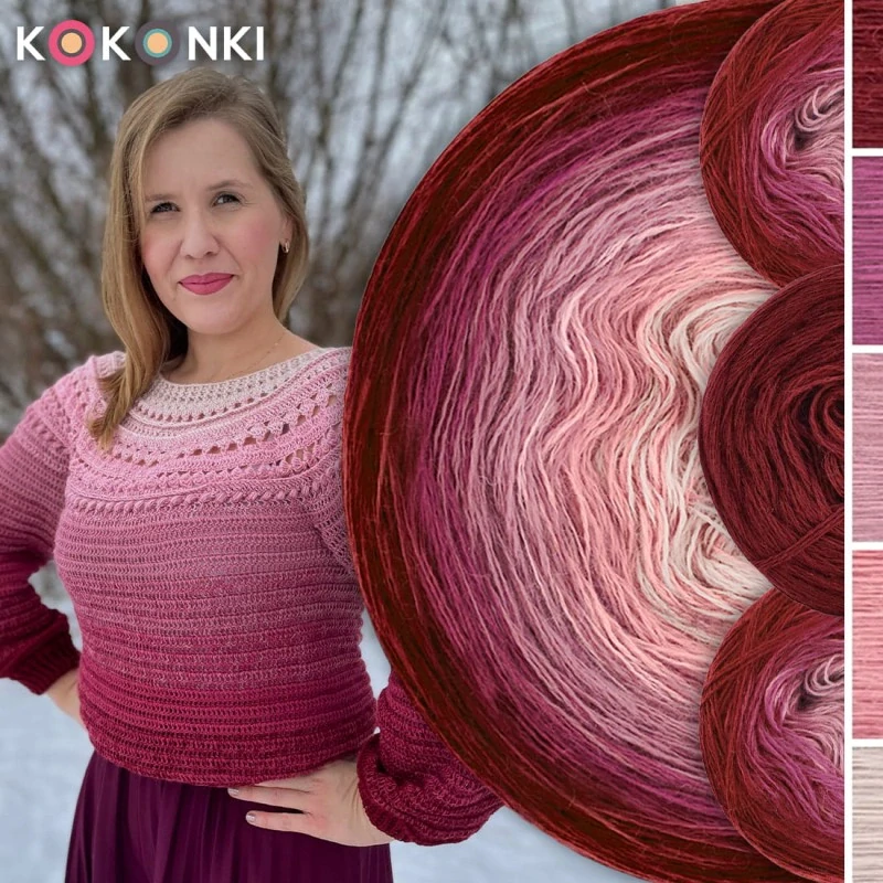 Sada na svetr/kardigan Nathalie od Kotek i motek 04 / Kokonki Merino / bordo/tmavástarorůžová/tlumená růžová/meruňková/tělová + vzor PDF
